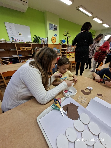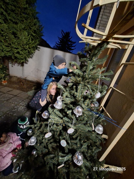 Letos jsme začátek adventu pojali trošičku jinak. S rodiči jsme vyrobili vánoční ozdoby a potom je společně u teplého čaje a perníku pověsili na vánoční stromek před školkou.